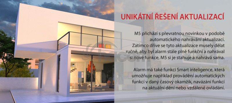 Hlavná jednotka si automaticky kontroluje dostupnosť najnovšieho firmware na serveri, postupne ho uloží do medzipamäte av dobe najväčšieho pokoja potom tento firmware aktualizuje. Aktualizácia je veľmi rýchla, trvá cca 1 minútu. Vďaka aktualizácii dochádza k pridávaniu nových funkcií, úprave bezpečnostných pravidiel na vyššiu verziu a podpore ďalších senzorov.