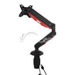 Herný držiak pre 1 monitor s plynovou pružinouIiyama G-MASTER je úchyt založený na plynulom nastavení plynovej pružiny (upevnenie na boku alebo zospodu) pre jednu obrazovku s uhlopriečkou až 27”. Vďaka úchytu získavame ďalšie miesto na doske stola a systém správy káblov udržuje stôl čistý. Ešte dôležitejšie je, že DS3001C umožňuje upraviť zvislú a vodorovnú polohu obrazovky (výšku a náklon) a jej otočenie, takže môžete ľahko upraviť polohu obrazovky podľa svojich preferencií.
