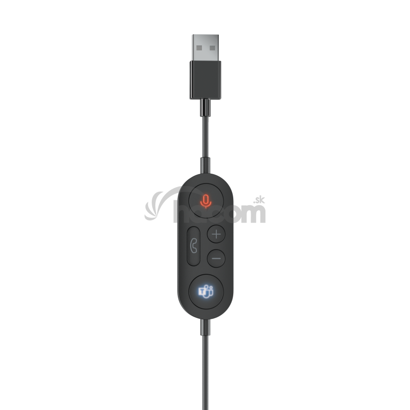 Stlmenie, hlasitosť a tlačidlo Microsoft Teams sú ľahko dosiahnuteľné.