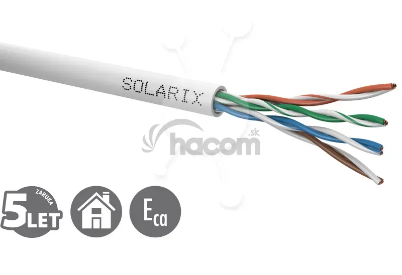 Inštalačný kábel Solarix CAT5E UTP PVC 305m / boxdrátTento inštalačný kábel s označením SXKD-5E-UTP-PVC je spoľahlivou súčasťou produktového radu Solarix - kategórie 5E. Spoločne s ostatnými komponentmi systému štruktúrovanej kabeláže Solarix vytvára riešenie, ktoré zaručuje dlhú životnosť, maximálny výkon a bezproblémový chod počítačovej siete. Inštalačné káble Solarix - kategórie 5E sú určené pre horizontálne rozvody a sú ponúkané v tienenej aj netienené verzii s rôznym typom plášťa - tj. PVC (trieda reakcie na oheň Eca), LSOH (trieda reakcie na oheň Dca s1 d2 a1) alebo UV stabilný PE (trieda reakcie na oheň FCA). Tieto káble bez problémov spĺňajú požiadavky definované v medzinárodných štandardoch ANSI / TIA 568, ISO / IEC 11801 a EN 50173 pre kategóriu 5E a triedu vedenie Class D, vrátane všetkých najnovších dodatkov. Rovnako ako ostatné káble Solarix, je aj kábel SXKD-5E-UTP-PVC značený metráží po 1 mv rozsahu od 0 do 1000 m. Kábel je dodávaný na vysoko pevné drevené cievke, na ktoré sú uvedené všetky potrebné produktové informácie, vrátane čiarových kódov, výrobnej šarže, popisu a najdôležitejších technických parametrov.