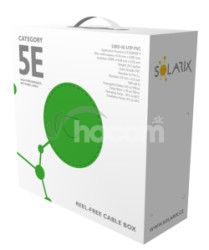Inštalačný kábel Solarix CAT5E UTP PVC E ca 100m/box SXKD-5E-UTP-PVCInštalačný kábel Solarix s označením SXKD-5E-UTP-PVC je spoľahlivý netienený kábel kategórie 5E, ktorý je určený na prevádzku ethernetových protokolov, vrátane 2.5GBASE-T a 5GBASE-T. Konštrukcia kábla je U/UTP, typ plášťa PVC s triedou reakcie na oheň Eca. Vodiče kábla sú vyrobené z kvalitného medeného drôtu s čistotou medi 99,97%. Kábel bez problémov spĺňa požiadavky z medzinárodných štandardov ISO/IEC 11801, EN 50173 a ANSI/TIA 568.2-D. V prípade CPR (nariadenie EÚ č. 305/2011) je kábel testovaný u nezávislého laboratória FORCE TECHNOLOGY v systéme posudzovania vlastností AVCP 3. Rovnako ako ostatné káble Solarix, je aj kábel SXKD-5E-UTP-PVC značený metrážou po 1 mv rozsahu od 0 do 100 m. Kábel je dodávaný vo vysoko odolnom trojvrstvovom leštenom kartónovom boxe (vždy farebne odlíšenom podľa typu kábla), na ktorom sú uvedené všetky nevyhnutné produktové informácie, vrátane čiarových kódov, výrobnej šarže, popisu a najdôležitejších technických parametrov.