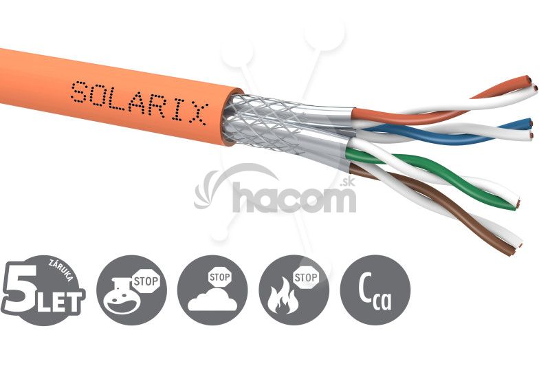 Inštalačný kábel s označením SXKD-7-SSTP-LSOH je štvorpárové inštalačný kábel kategórie 7 s dvojitým tienením (tj. S hliníkovou fóliou okolo každého páru a opletom okolo všetkých párov), ktorý je určený pre veľmi náročné použitie. Tento kábel prevyšuje požiadavky špecifikované v medzinárodných normách EN 50173 a ISO 11801 pre kategóriu 7 resp. triedu vedenie Class F - tj. je testovaný až do šírky pásma 1000 MHz .. Vodiče kábla sú vyrobené z veľmi kvalitného medeného drôtu vo veľkosti AWG 23 s polyetylénovou izoláciou; typ plášťa je LSOH (trieda reakcie na oheň Cca s1 d1 a1, režim posudzovania a overovania stability parametrov Systém 1 + / AVCP 1+). Inštalačný kábel Solarix - kategória 7 je vhodný pre prevádzku aj tých najnáročnejších protokolov, ktoré sú určené pre metalická vedenia vrátane vysokorýchlostného protokolu 10GBASE-T. Kábel SXKD-7-SSTP-LSOH je značený priebežnú metráží po 1 ma je dodávaný na vysoko pevné drevené cievke, na ktoré sú uvedené všetky potrebné produktové informácie, vrátane čiarových kódov, výrobné šarže, popisu a najdôležitejších technických parametrov.