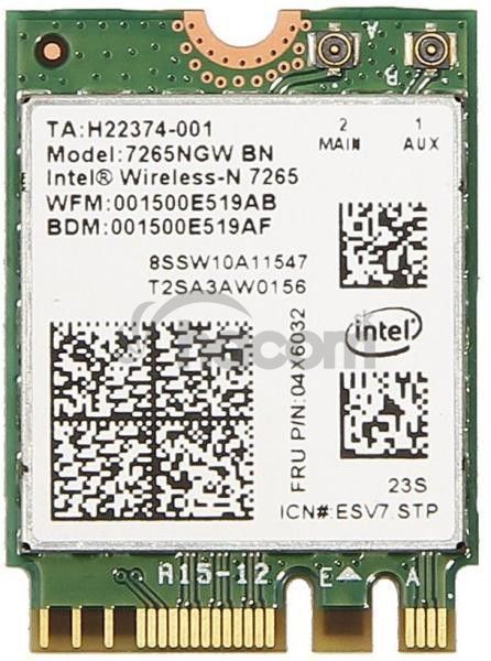 - Intel Dual Band Wireless-AC 7265, 2x2 AC + BT, M.2 7265.NGWWB.W