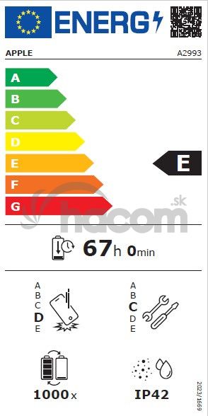 Čip: Apple A17 Pro, 6jadrové CPU (2× výkonnostné + 4× úsporné), 5jadrové GPU, 16jadrový Neural Engine