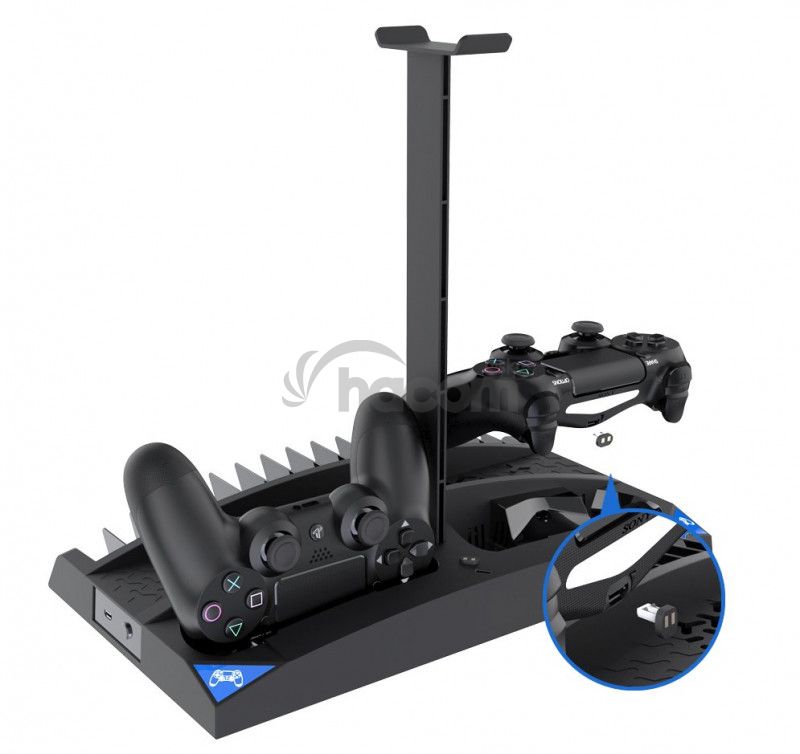 Herná konzola je vybavená ventilátorom pre dodatočné chladenie hernej konzoly, dvoma nabíjacími slotmi pre herné ovládače, zakladačom na 10 hier a vešiakom na slúchadlá. Unikátny systém magnetických adaptérov, ktoré sa zapoja do nabíjacieho konektora ovládača a následne jednoduchým položením do nabíjacieho slotu sa zaháji nabíjanie. Šetríte tým nabíjací konektor, ktorý nie je každú chvíľu namáhaný zapájaním a vypájaním kábla.
