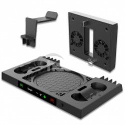 Stojan je ďalej vybavený nabíjačkou pre dva ovládače a odkladacím ramenom pre slúchadlá. Inštalácia nezaberie prakticky takmer žiadny čas. Stačí konzolu do stojana postaviť a zo zadnej strany zapojiť do USB prídavné chladenie.
