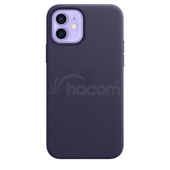 Kožený kryt s MagSafe na iPhone 12 a 12 Pro – temně fialový
