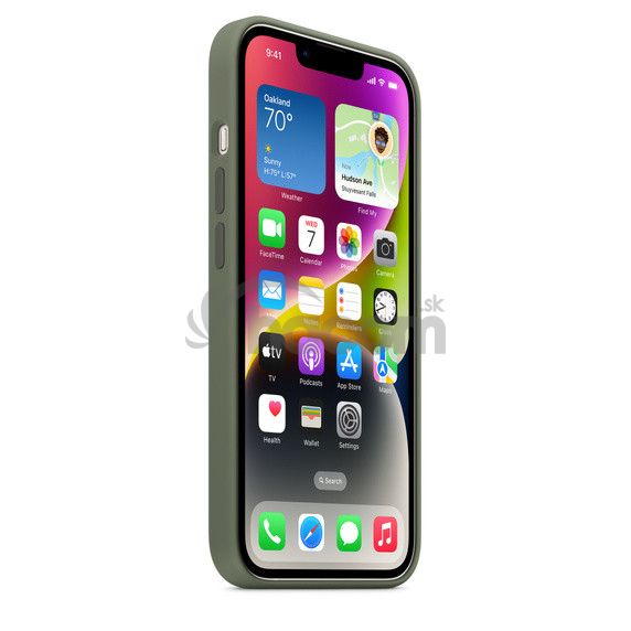 Silikónový kryt s MagSafe – olivovýHodvábne jemný povrch zo silikónu sa príjemne drží. Na vnútornej strane prístroj chráni podšívka z jemného mikrovlákna.