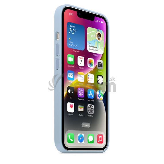 Silikónový kryt s MagSafe – blankytnýHodvábne jemný povrch zo silikónu sa príjemne drží. Na vnútornej strane prístroj chráni podšívka z jemného mikrovlákna.