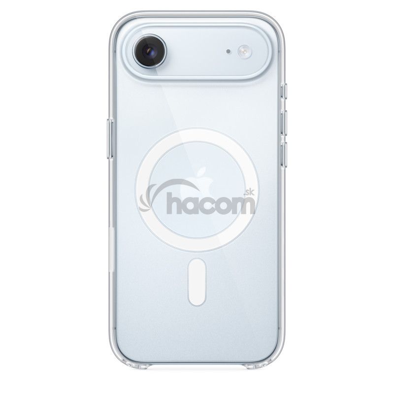 Kryt s MagSafe na iPhone AirTento ultratenký priehľadný kryt necháva vyniknúť mimoriadne tenký dizajn iPhonu Air. Zadný panel s hrúbkou 0,9 mm je zosilnený polykarbonátovým rámčekom. Jemne zakalené vnútro kontrastuje s vysoko lesklým vonkajším povrchom. Tlačidlá sú novo navrhnuté s dôrazom na presnú haptickú aj zvukovú odozvu. Tenký a ľahký kryt s MagSafe na iPhone Air je dôkladne optimalizovaný tak, aby iPhone chránil pred poškriabaním aj pri páde.