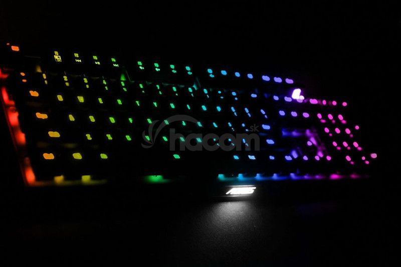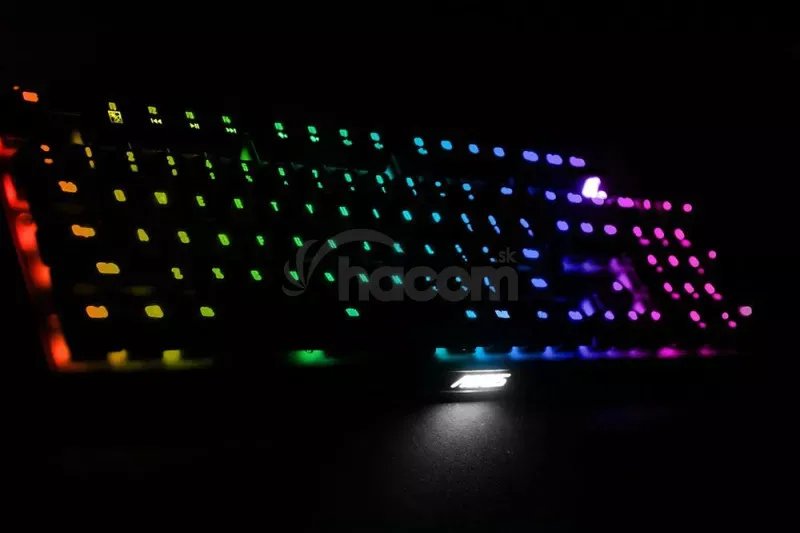 * Ako doplnok pre najnáročnejších hráčov je súčasťou balenia tiež 9 PBT klávesov pre nahradenie klávesov W, A, S, D, Esc a šípok, ktoré sú tuhšie, odolnejšie a na dotyk jemnejšie ako klasické ABS klávesy.
