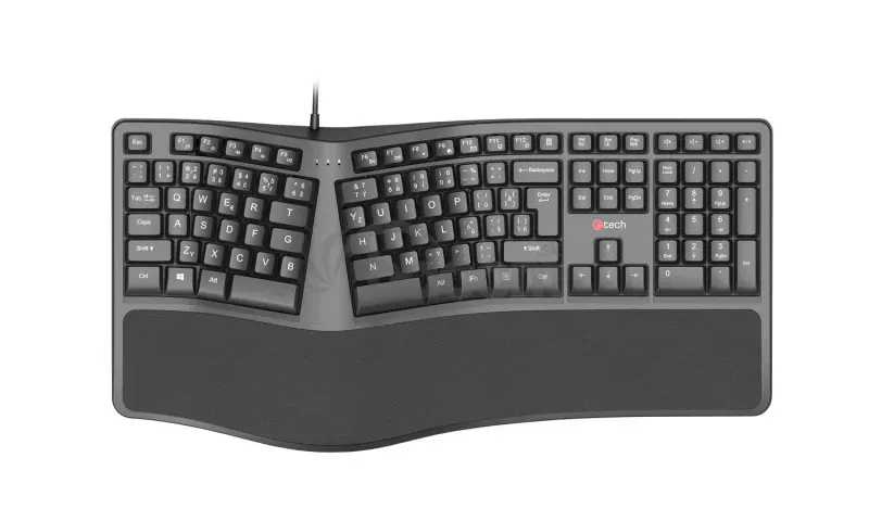 Ergonomická klávesnica C-TECH KB-113E bola navrhnutá pre tých, ktorí trávia prácou veľa hodín. Svojim špeciálnym konštrukčným riešením a mäkkú predložkou Vám táto klávesnica pomôže minimalizovať Vašu únavu pri dlhej práci. Pomáha tiež podobne ako vertikálne myš predísť, alebo zmierniť dopady ochorenia karpálneho tunela.ŠPECIFIKÁCIA: