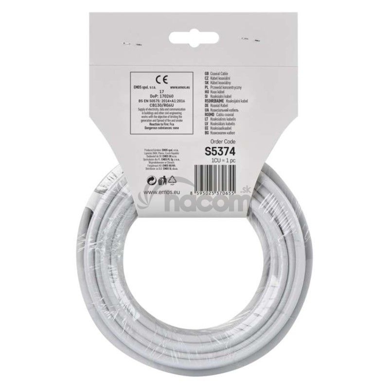 Koaxiálny kábel CB130, 10m S5374