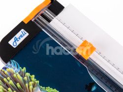 Kotúčová rezačka AVELI DISC 300 z matného plastu s rezným nožom z nerezovej ocele s kapacitou až 8 listov (80g/m2).Rozmer: 505x245x45 mm