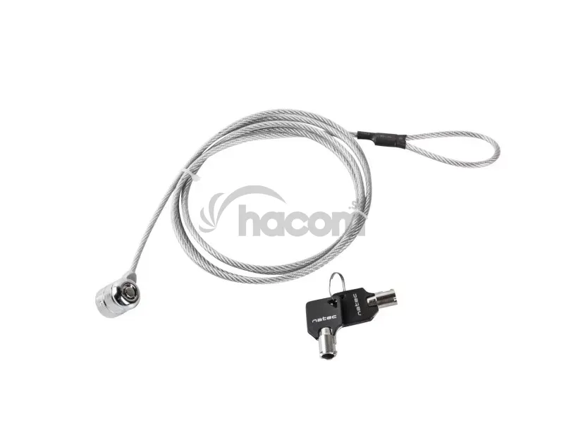 Lankový bezpečnostný zámok na kľúč pre notebooky vyrobený z galvanizovanej ocele, pokrytý gumovou vrstvou, vhodný na montáž v bezpečnostných slotoch notebookov a iných zariadení napr. trezoroch, ktorý zvyšuje bezpečnosť vášho zariadenia a poskytuje ochranu pred odcudzením.
