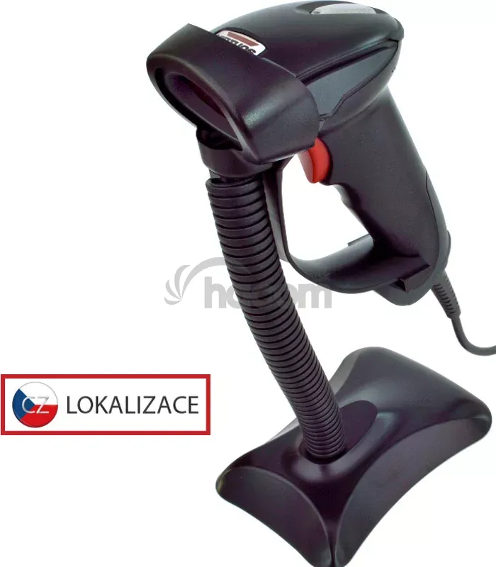 Laserový ručný snímač čiarového kódu v čiernej farbe umožňujúci automatickú detekciu prítomnosti kódu, dodávaný vrátane stojanu. Konštrukcia sa vyznačuje vysokou spoľahlivosťou a odolnosťou. Čítačka je vybavená USB rozhraním umožňujúcim emulovať klávesnicu aj sériový port.ŠPECIFIKÁCIA