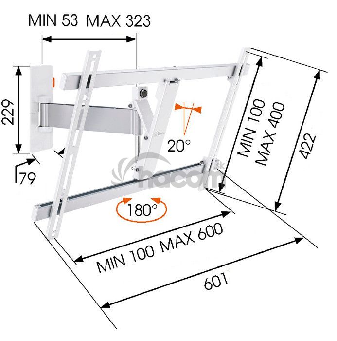 - LCD rameno Vogel's W52081, 40-65 ", 2 kĺby, biele W52081