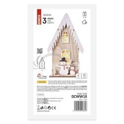 LED dekor. drevená – dom so snehuliakmi, 28,5 cm, 2x AA, vnútorná, teplá biela, časovač DCWW18