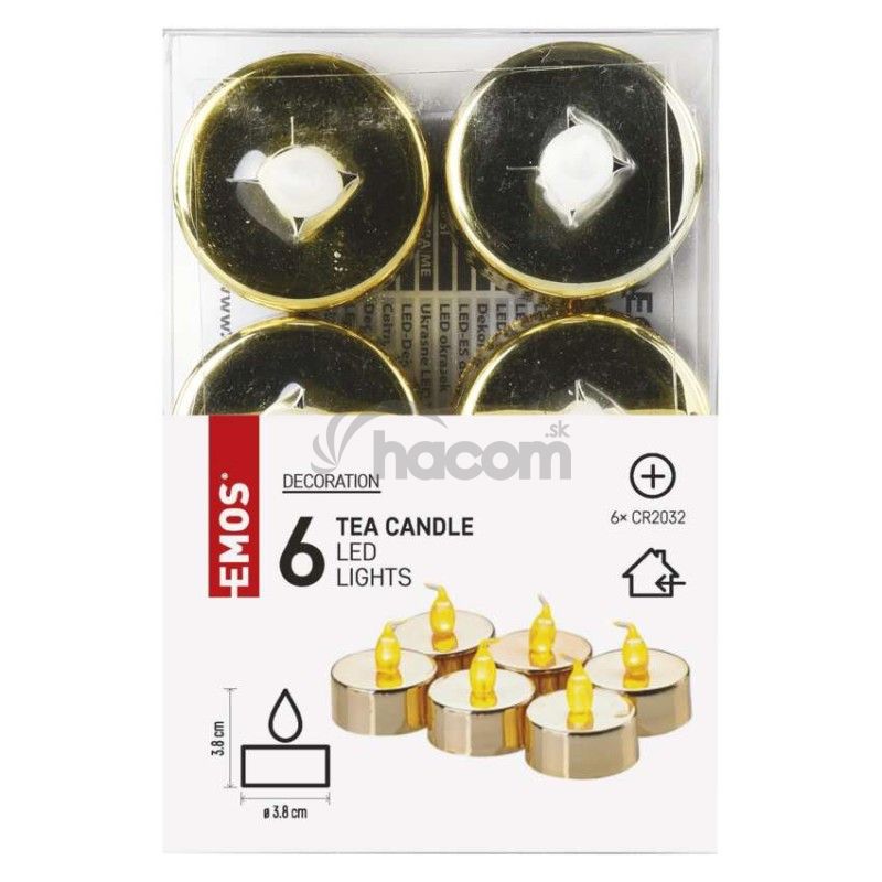 - LED dekorácia – 6x čajová sviečka zlatá, 6x CR2032, vnútorná, vintage 6ks DCCV13