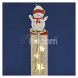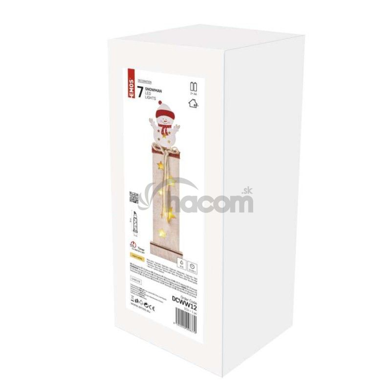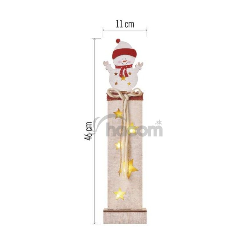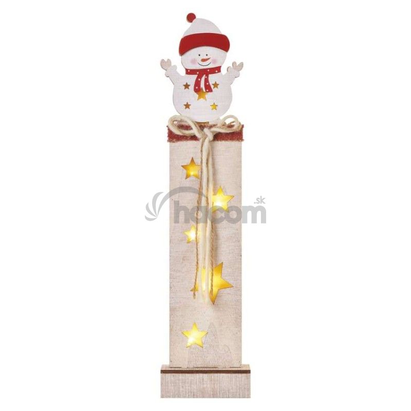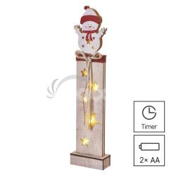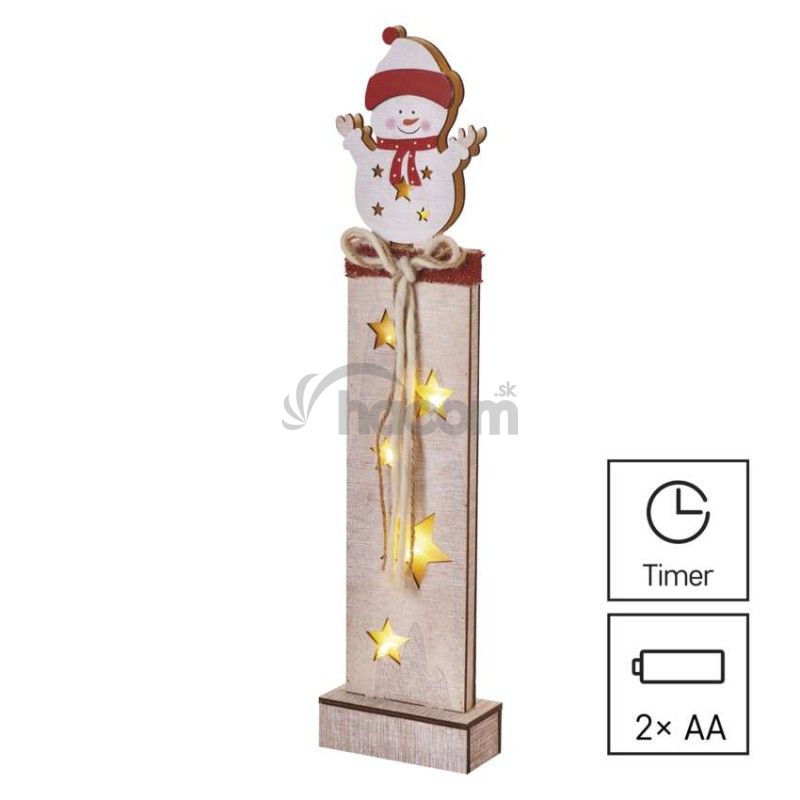 LED dekorácia drevená – snehuliak, 46 cm, 2x AA, vnútorná, teplá biela, časovač DCWW12