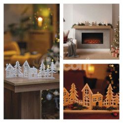 LED dekorácia drevená – vesnička, 60 cm, 2x AA, teplá biela, časovač DCWW41