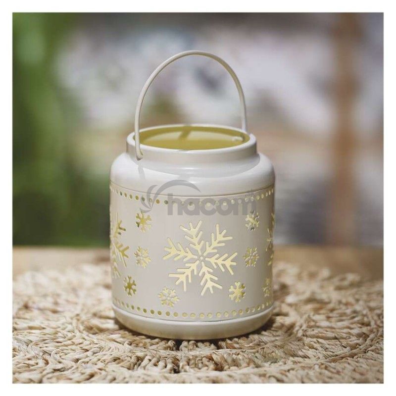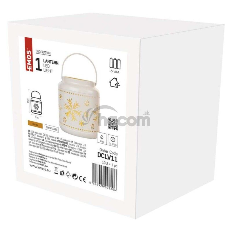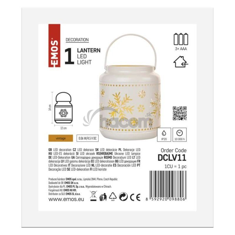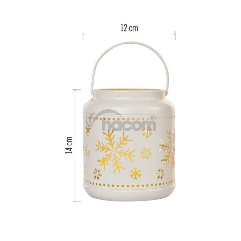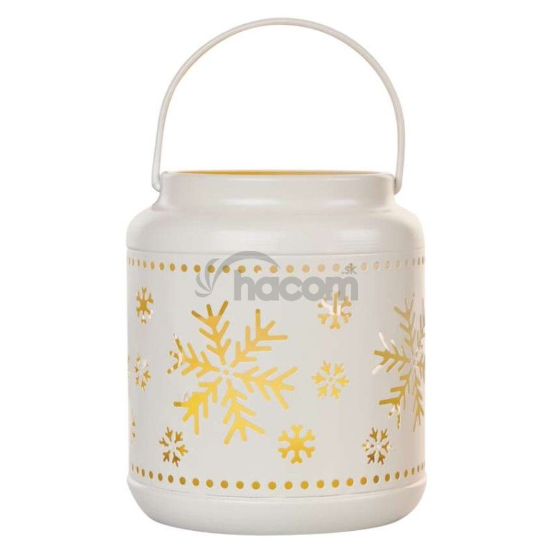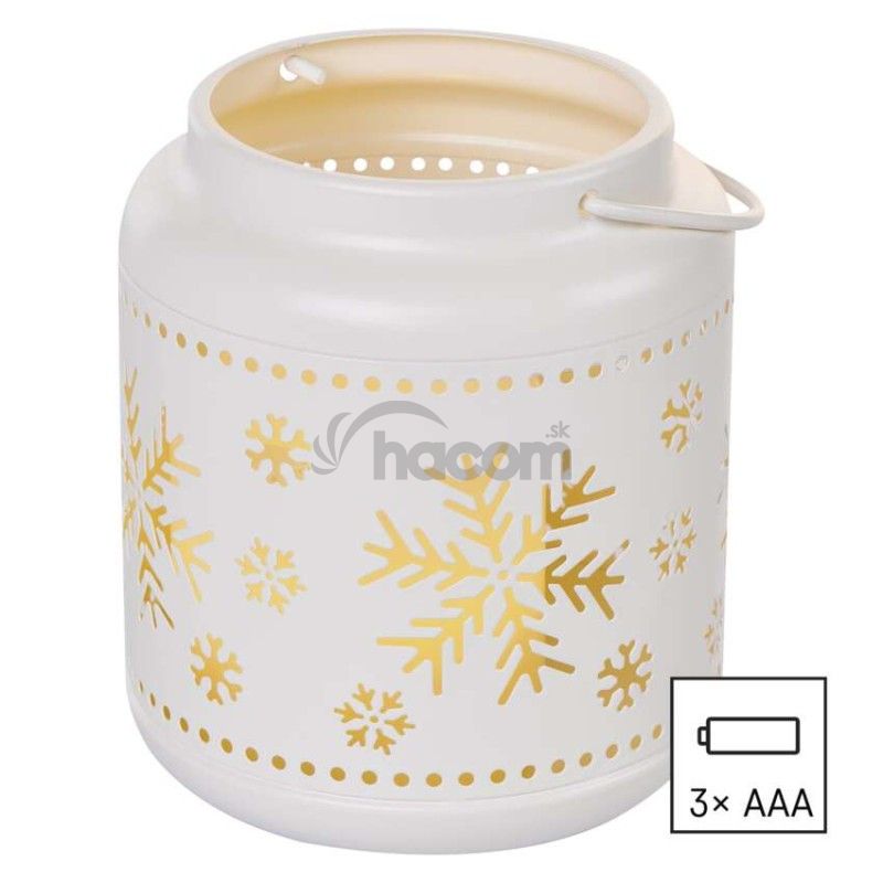- LED dekorácia – lampáš s vločkami kovová biela, 14 cm, 3x AAA, vnútorná, vintage DCLV11