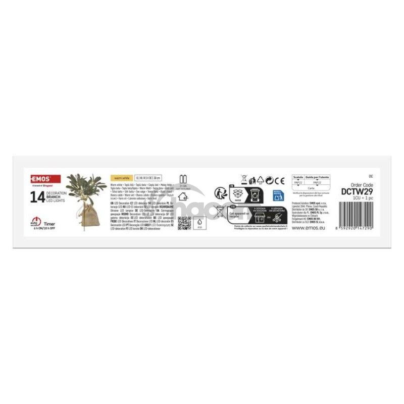 - LED dekorácia - vetvička jmelí, 2x AA, teplá bílá, časovač DCTW29