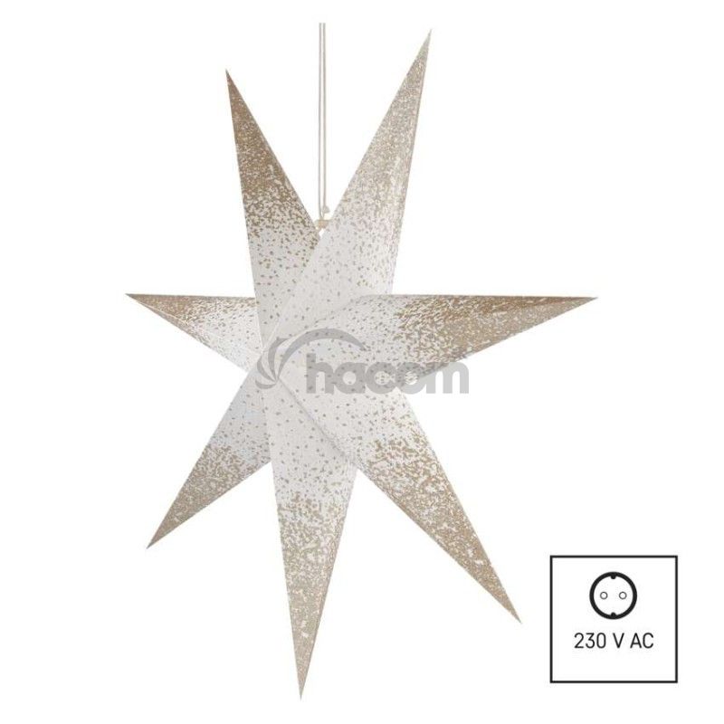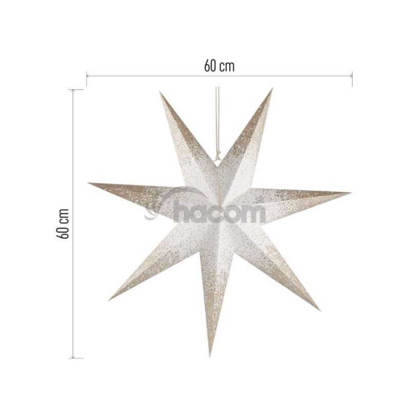 LED hviezda papierová závesná so zlatými trblietkami na okrajoch, biela, 60 cm, vnútorná DCAZ07