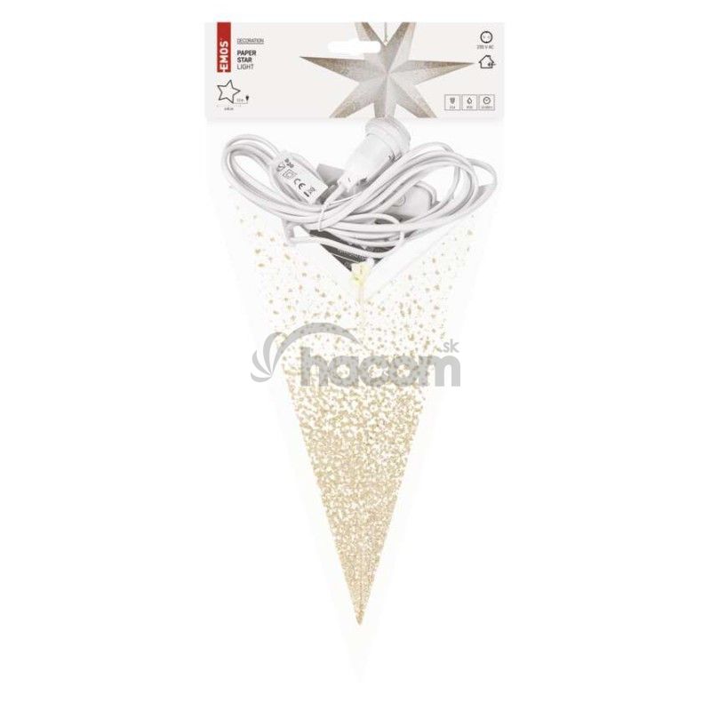 - LED hviezda papierová závesná so zlatými trblietkami na okrajoch, biela, 60 cm, vnútorná DCAZ07