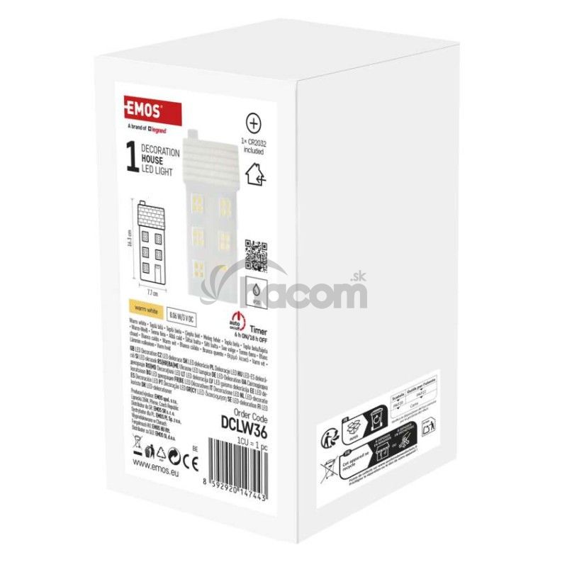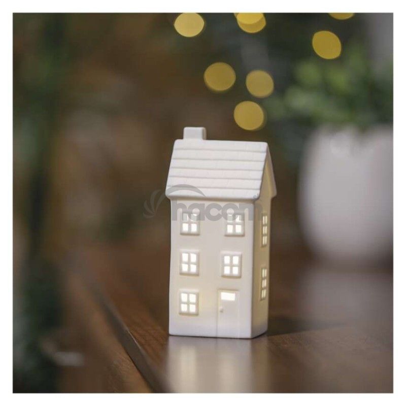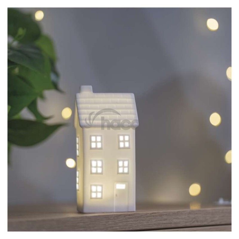- LED keramický domček, 16 cm, 1x CR2032, vnútorná, teplá biela, časovač DCLW36