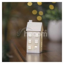 LED keramický domček, 16 cm, 1x CR2032, vnútorná, teplá biela, časovač DCLW36