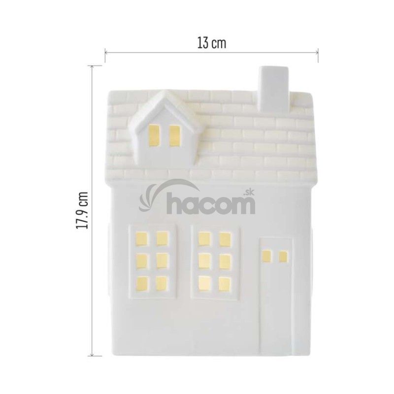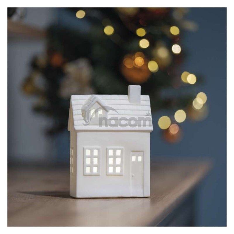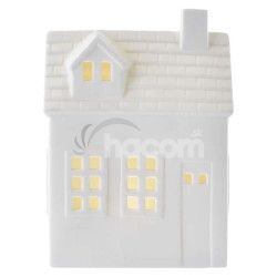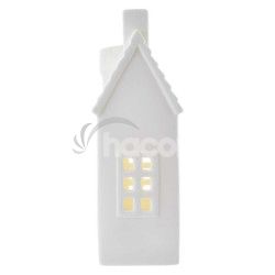 - LED keramický domček, 18 cm, 1x CR2032, vnútorná, teplá biela, časovač DCLW37