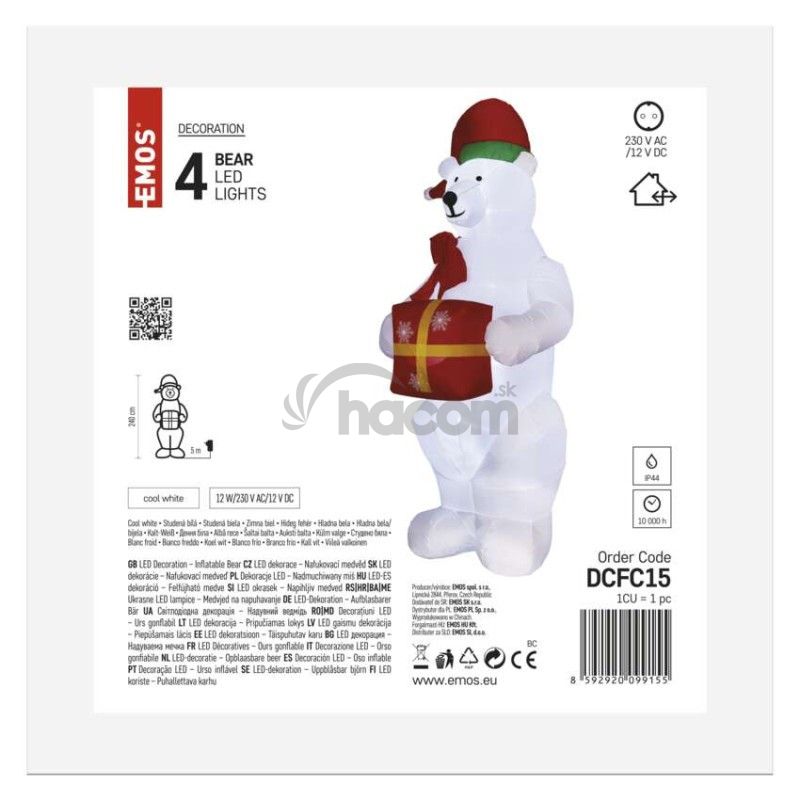 - LED ľadový medveď s vianočným darčekom, nafukovací, 240 cm, vonk./vnút., studená biela DCFC15