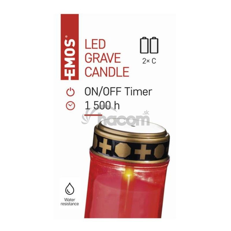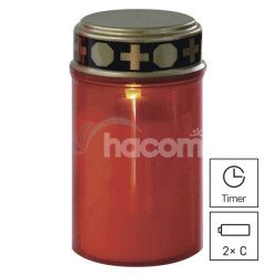 - LED náhrobná sviečka červená, 2x C, vonkajšia aj vnútorná, teplá biela, časovač DCCV19