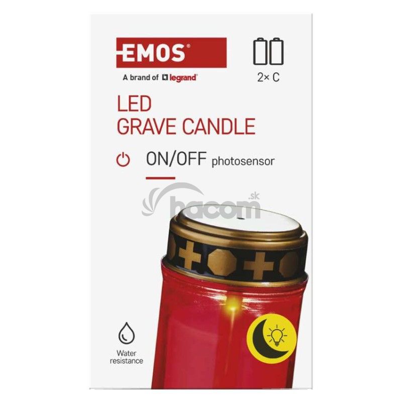 - LED náhrobná sviečka červená, 2x C, vonkajšia aj vnútorná, teplá biela, senzor DCCV20