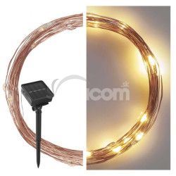 LED nano reťaz so solárnym panelom, medená, 12 m, vonkajšia aj vnút., teplá biela, časovač D3ZW01
