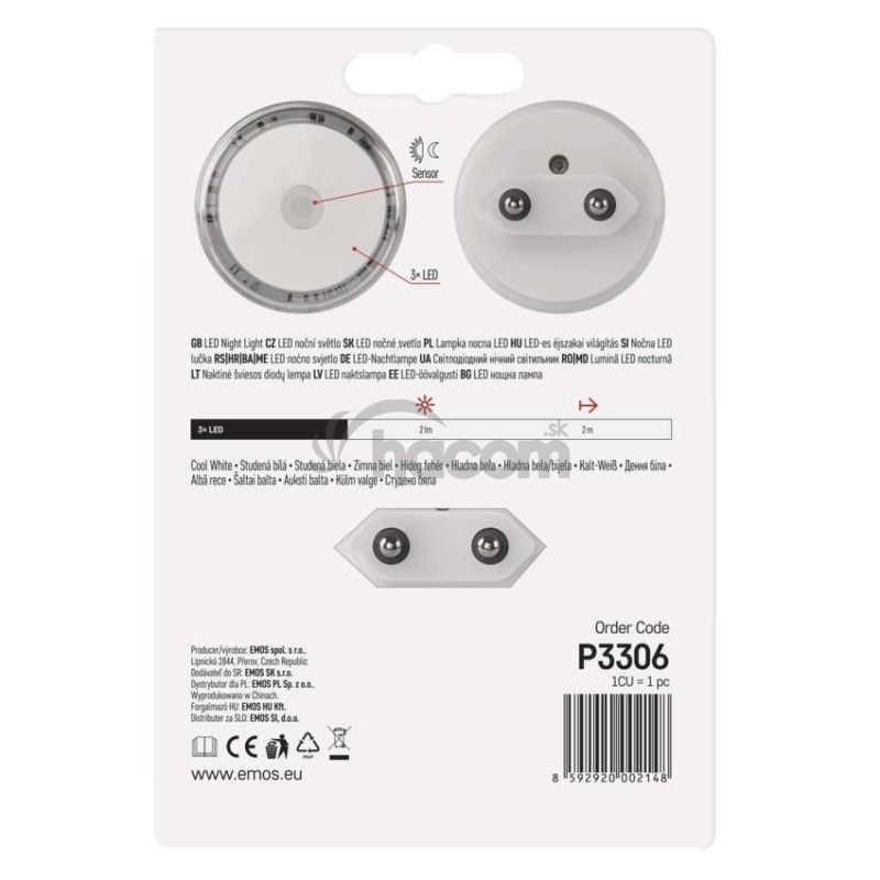LED nočné svetlo P3306 s fotosenzorom do zásuvky P3306