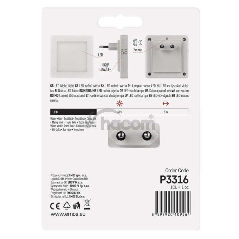 - LED nočné svetlo P3316 s fotosenzorom do zásuvky P3316