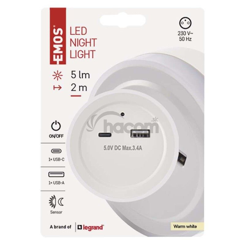 LED nočné svetlo P3323 s fotosenzorom do zásuvky P3323