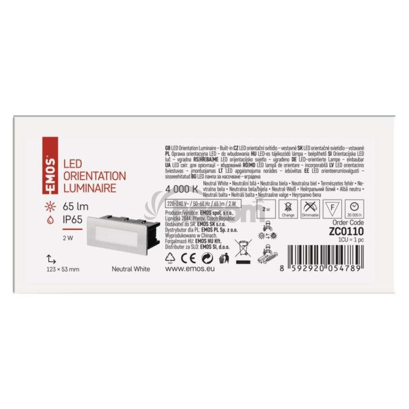 - LED orientačné vstavané svietidlo AMAL 123×53 2W neutr.b.,IP65 ZC0110