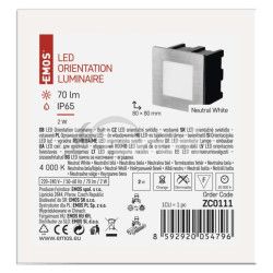 - LED orientačné vstavané svietidlo AMAL 80×80 2W neutr. b.,IP65 ZC0111