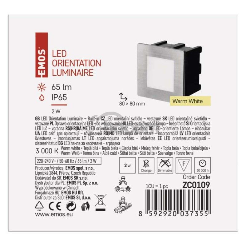 LED orientačné vstavané svietidlo AMAL 80×80, 2W teplá b.,IP65 ZC0109