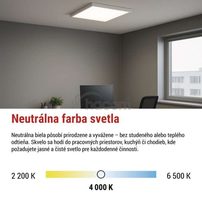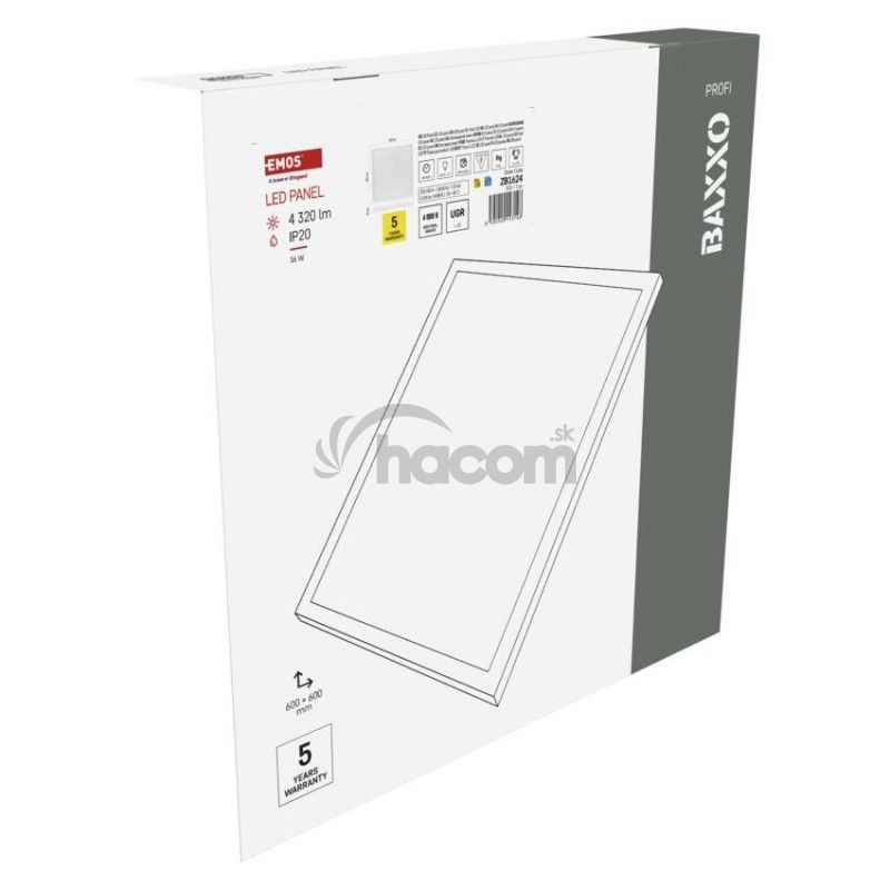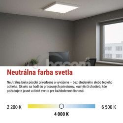 LED panel BAXXO 60×60, štvorcový prisadený biely, 36W neutr. biela ZB1624