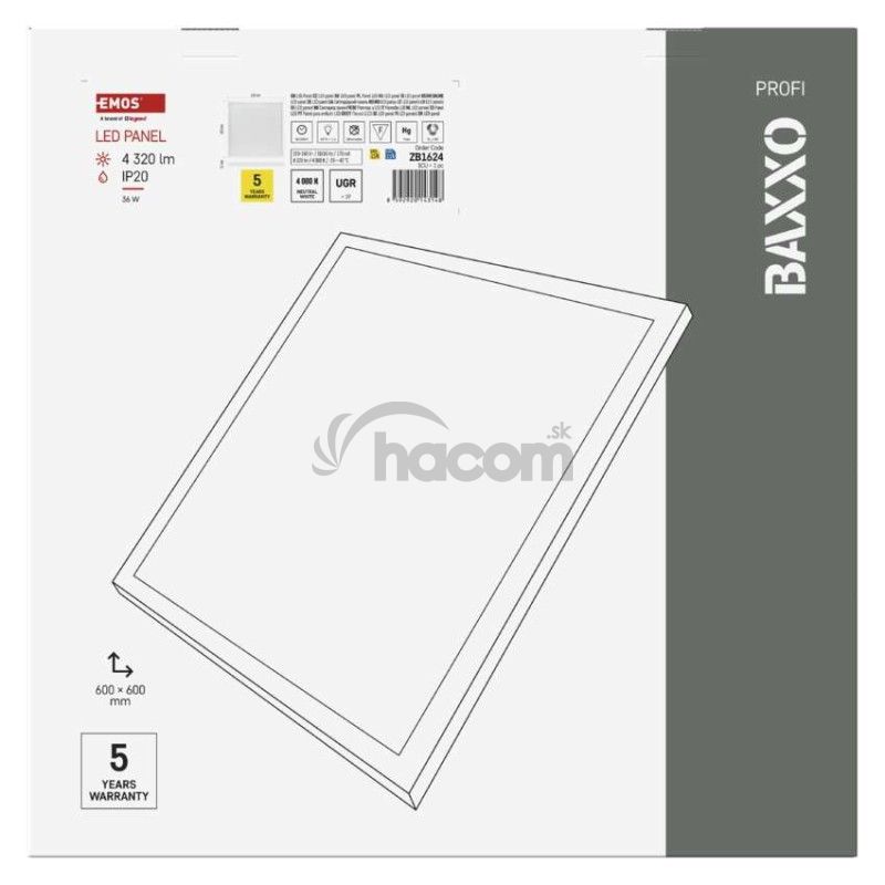 - LED panel BAXXO 60×60, štvorcový prisazeny biely, 36W neutr. biela UGR ZB1624