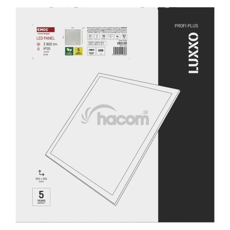- LED panel LUXXO backlit 60×60, štvorcový vstavaný biely, 22W neutrálna b. UGR ZB2120