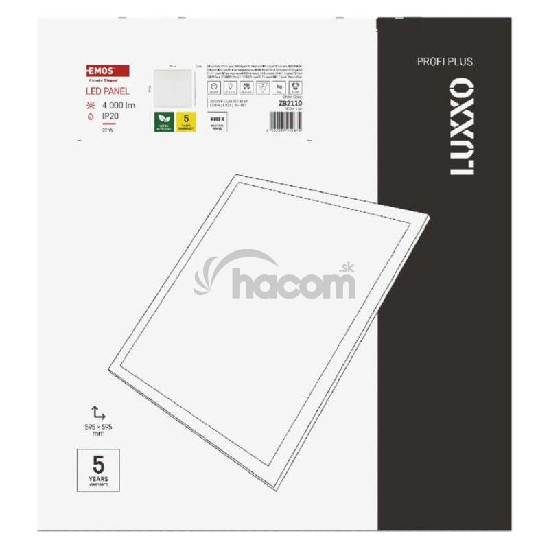 - LED panel LUXXO backlit 60×60, štvorcový vstavaný biely, 22W neutrálna b. ZB2110