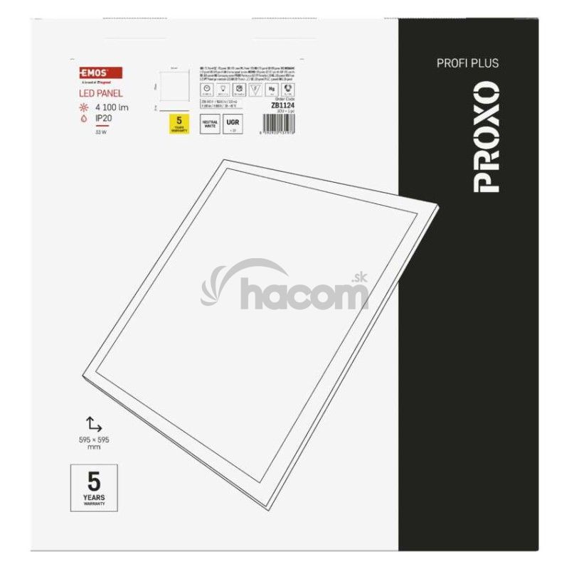 - LED panel PROXO 60×60, štvorcový vstavaný biely, 33W neutrálna b. UGR ZB1124