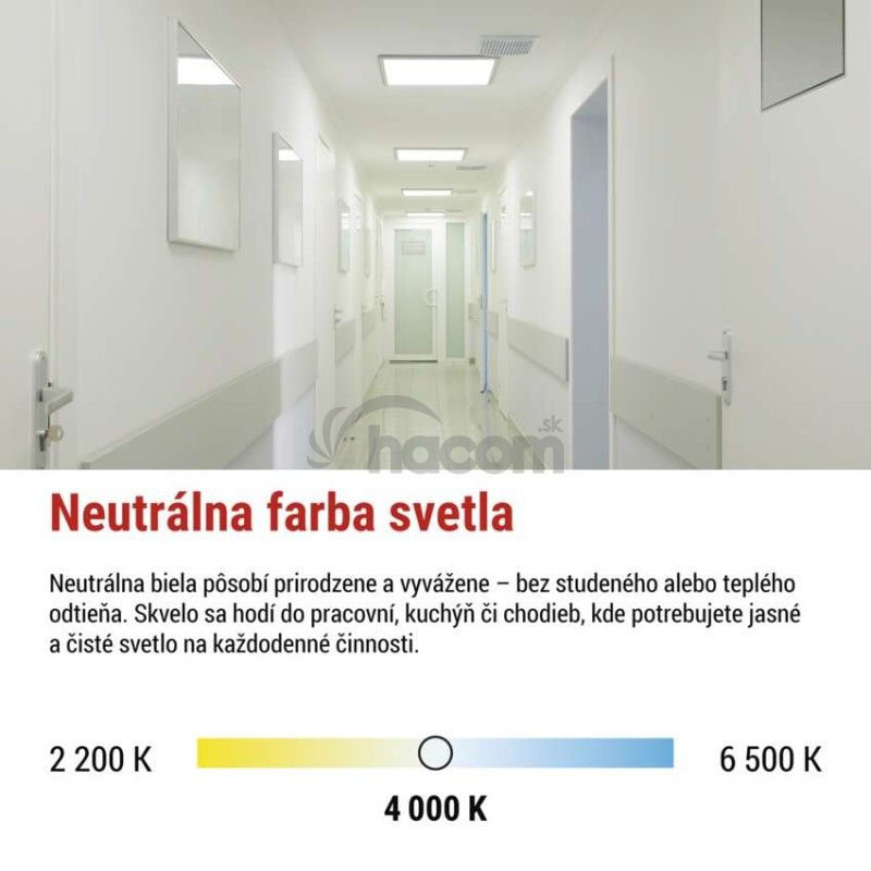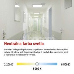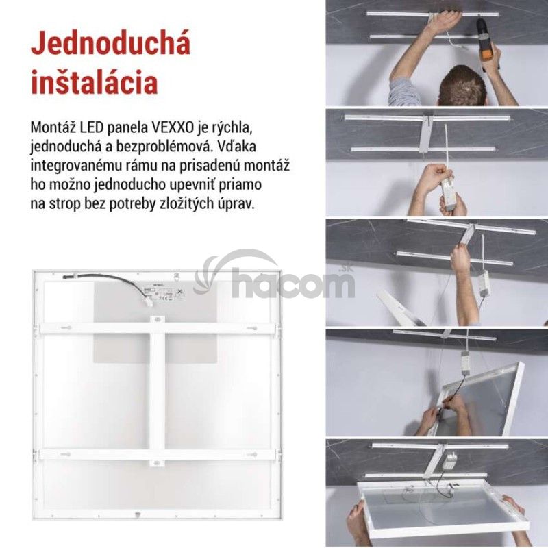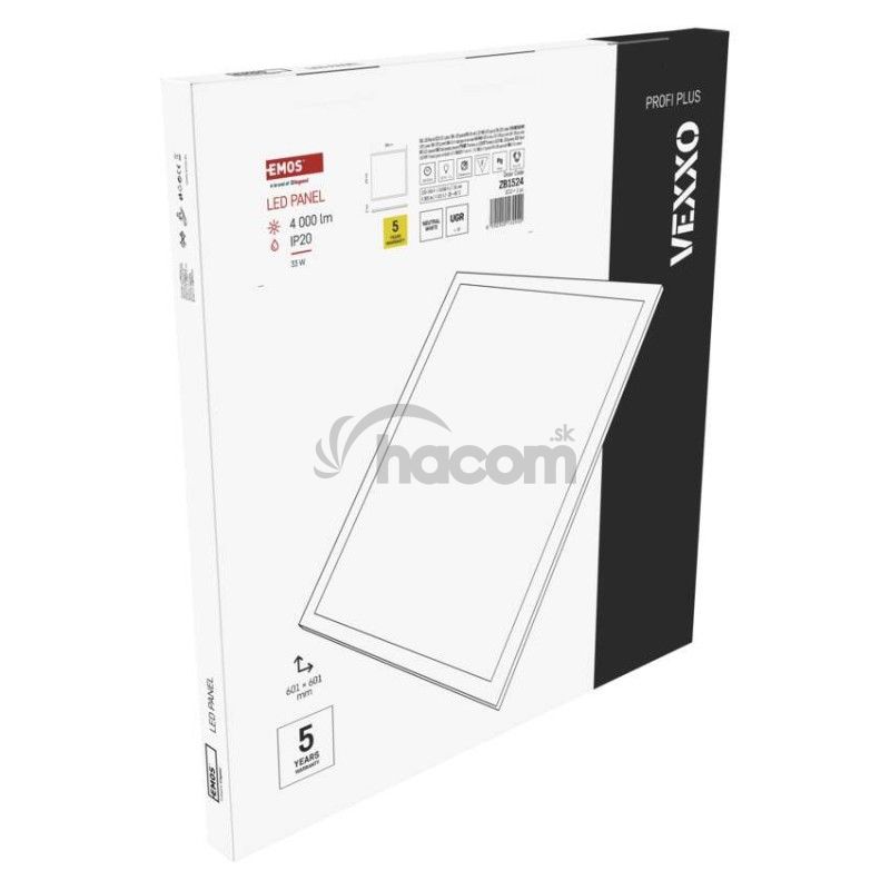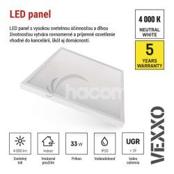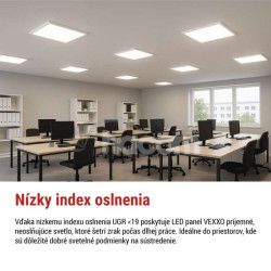 - LED panel VEXXO 60×60, prisadený štvorcový biely, 33W neutrálna biela UGR ZB1524