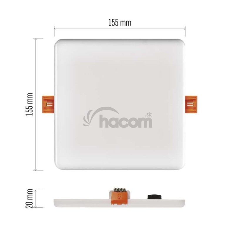- LED panel VIXXO 155×155, štvorcový vstavaný biely,13,5W neut.b.,IP65 ZV2142