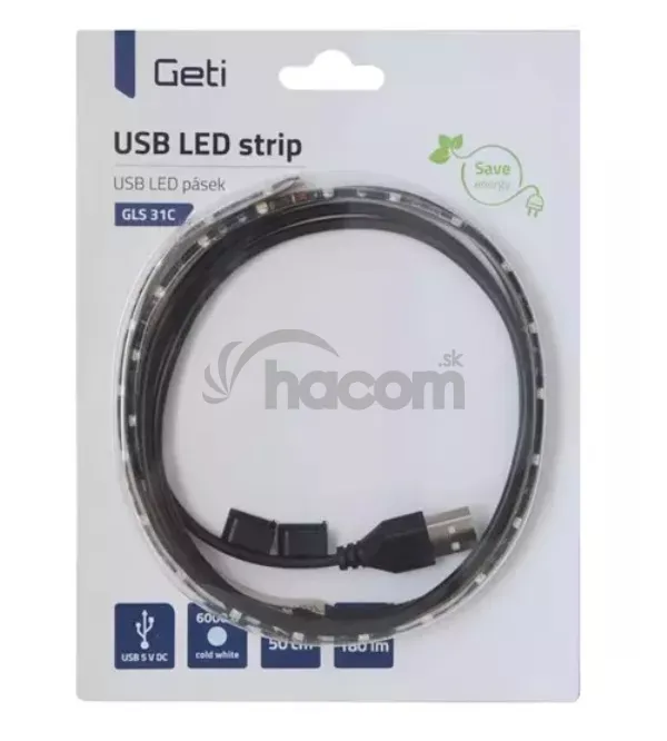 LED náladové osvetlenie na upevnenie na televízor znižuje únavu očí a umocňuje zážitok zo sledovania. Sledovanie televízie v tmavej izbe môže spôsobiť únavu očí, pretože očné svaly neustále pracujú v reakcii na veľké rozdiely svietivosti medzi tmavým izbou a televíznou obrazovkou. Bežné izbové osvetlenie však zase znižuje zážitok zo sledovania. LED pásik Geti GLS31C je najjednoduchším riešením. Je vybavený USB konektorom s 1m dlhým prívodom a je teda ideálny na napojenie na moderné TV, ktoré majú tento výstup.Parametre produktu: